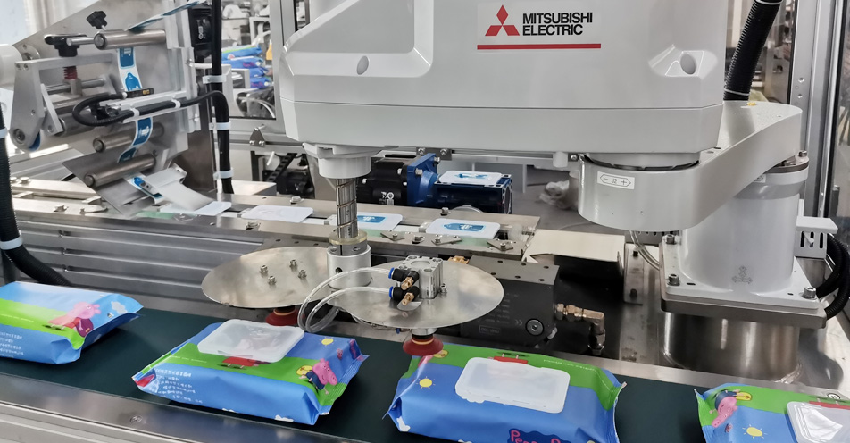 本機(jī)使用三菱機(jī)器人高剛性機(jī)械臂,視覺(jué)識(shí)別技術(shù)、傳送帶跟著技術(shù)等完美結(jié)合。在線可以完成自動(dòng)取蓋、貼標(biāo)、涂膠、粘蓋等一系列動(dòng)作,更換蓋子規(guī)格時(shí),在觸摸屏操作切換。節(jié)省人力,從而降低用工成本。極大地提高生產(chǎn)效率和產(chǎn)品合格率。